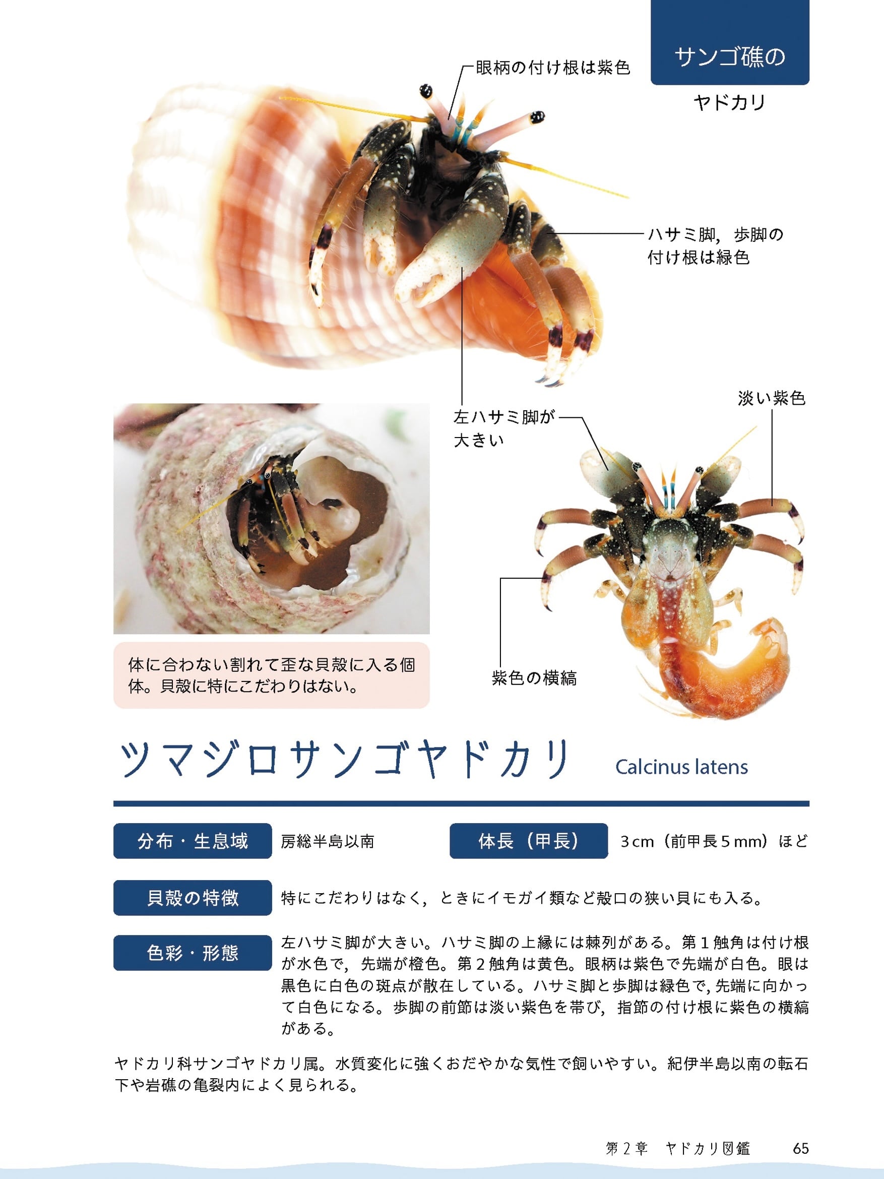 ●ヤドカリの体のしくみや生態・分類などの基本的な情報を美しいビジュアルとともに解説。