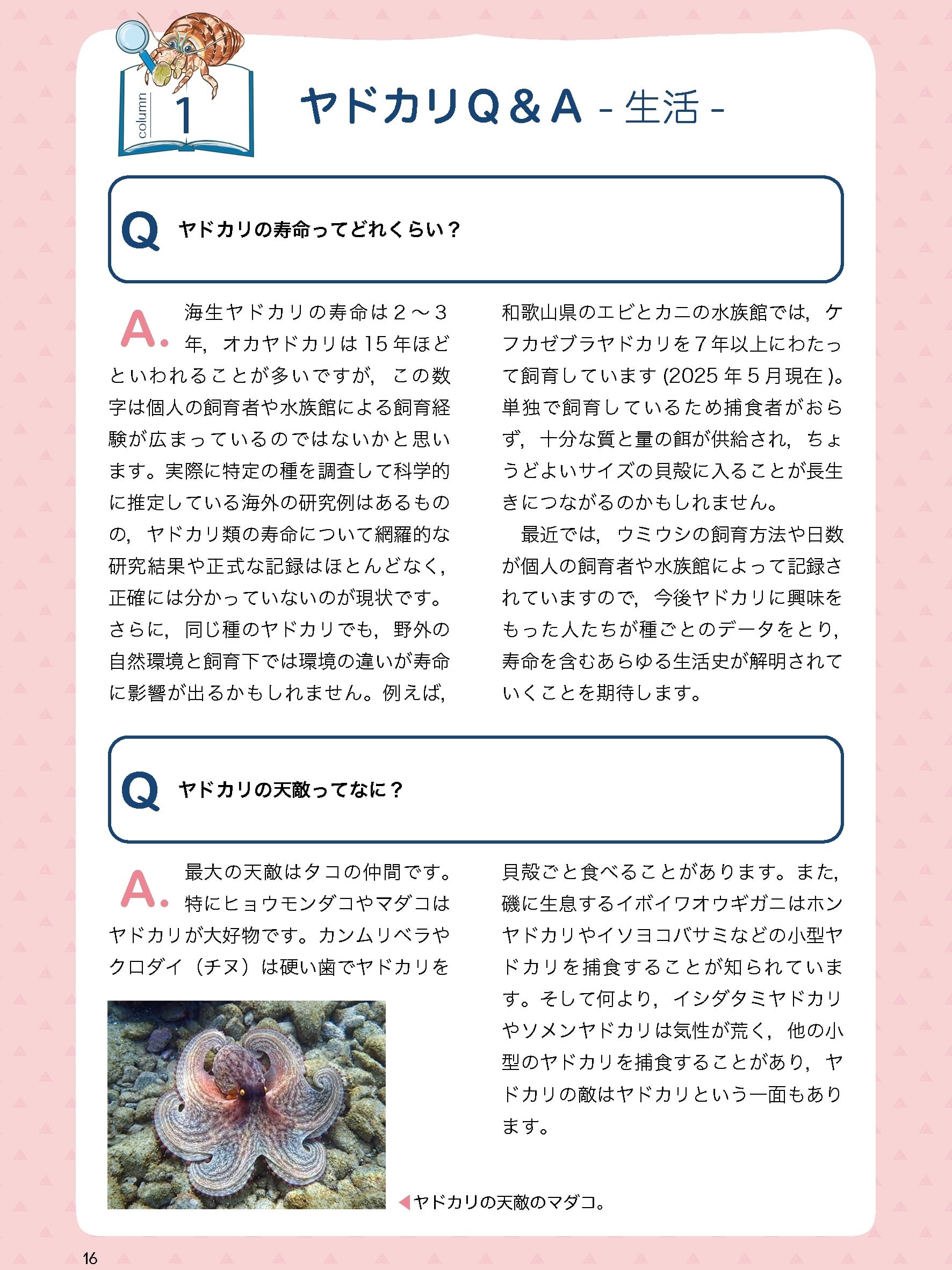 ●素朴な疑問を集めたQ&Aの他、ヤドカリに関する様々な情報をコラムとして紹介。